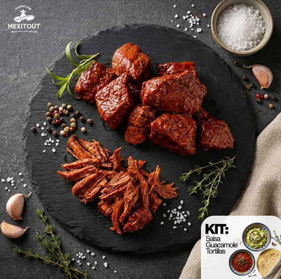 - 4 x 500gr Bœuf Birria entièrement cuit, prêt à effilocher