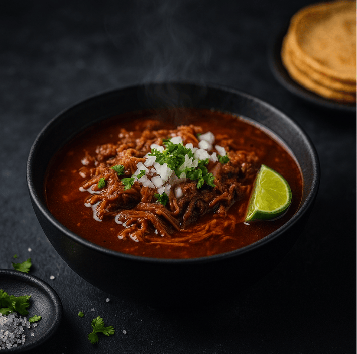 La Birria de Bœuf Mexitout est un bœuf longuement cuit et déjà assaisonné, offrant une texture tendre et savoureuse.